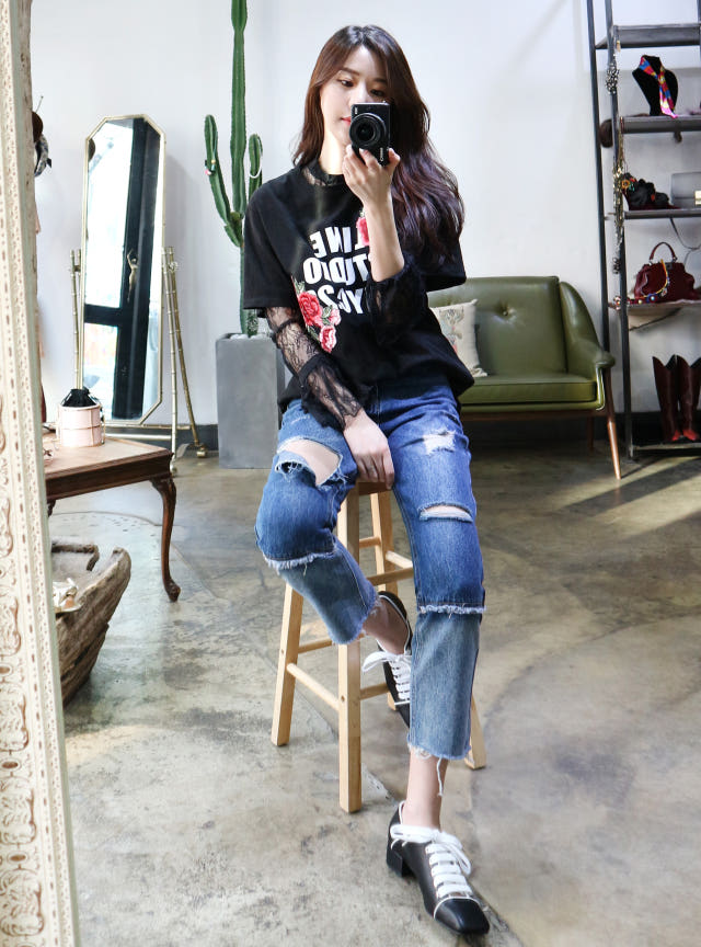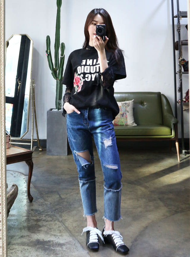 여유있는 핏으로 데님과 함께