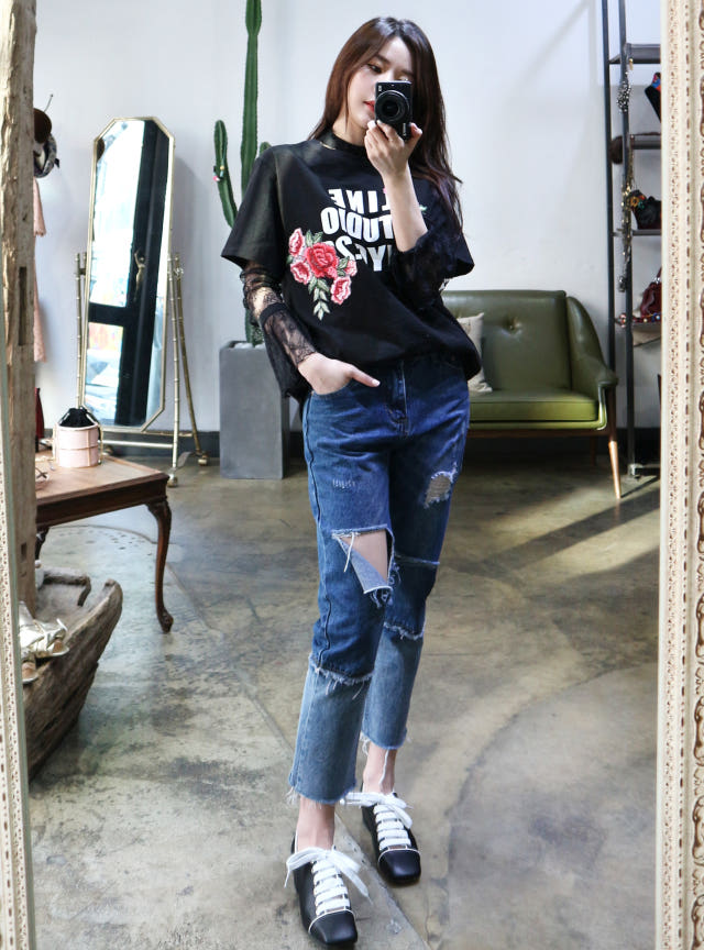 고퀄리티 로즈 자수로 트렌디한 감각을