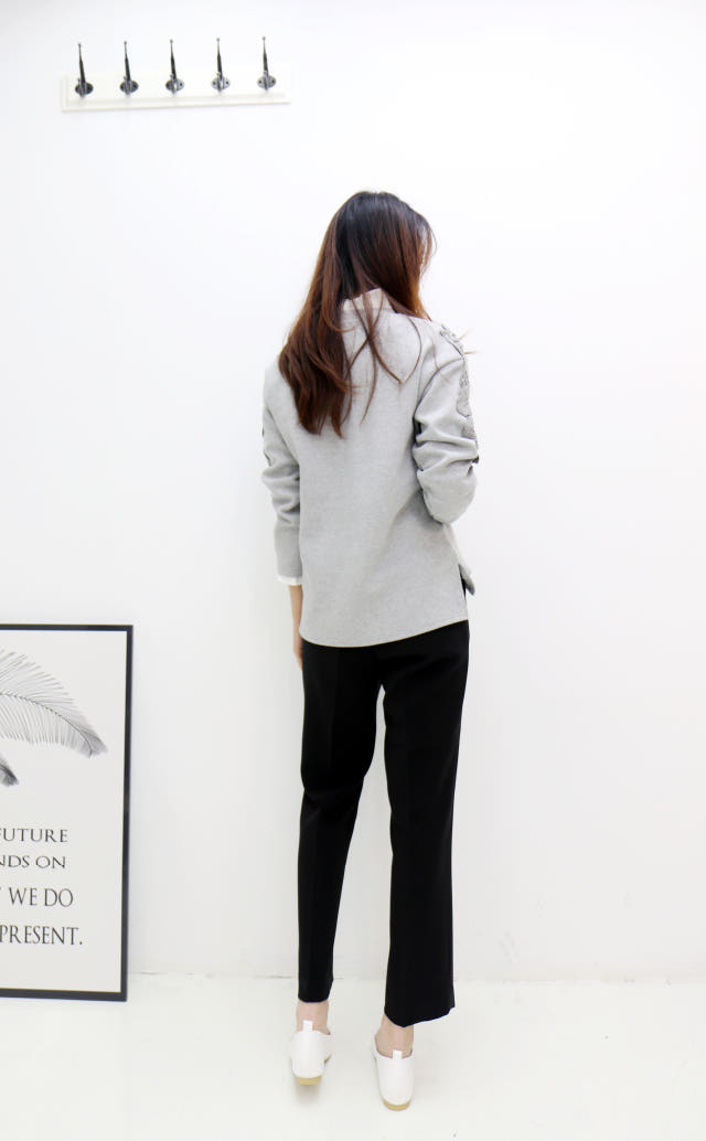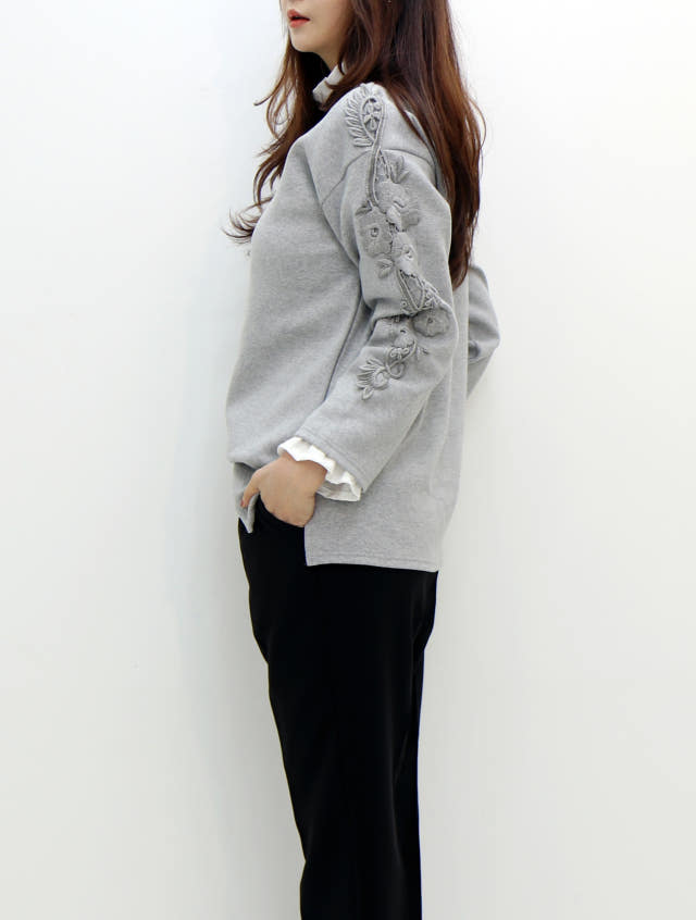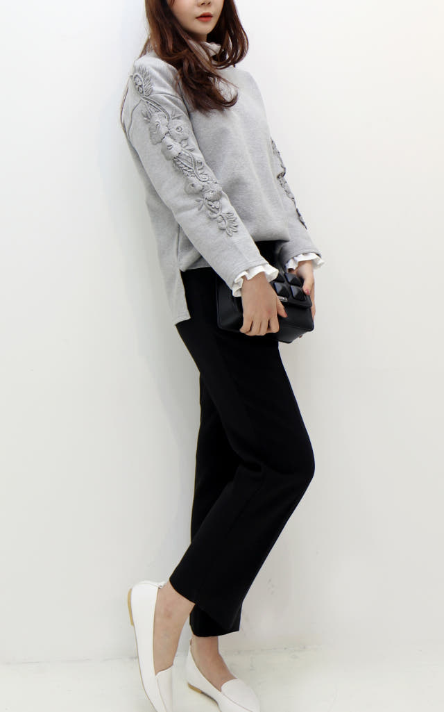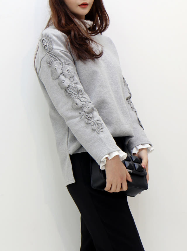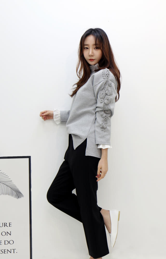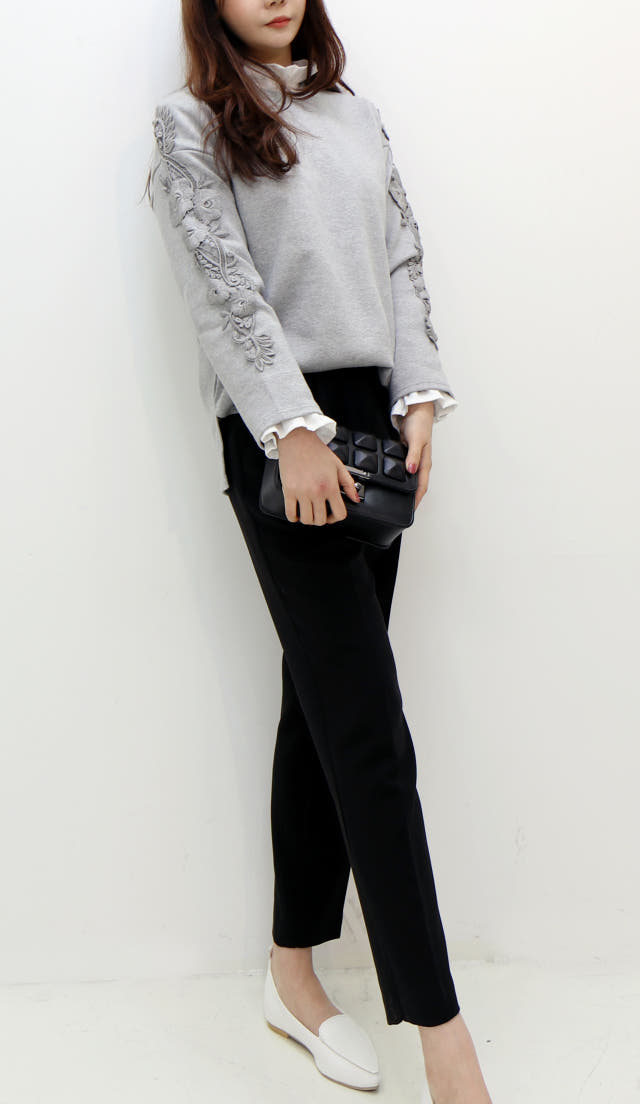 소매부분 플라워 자수가 포인트로