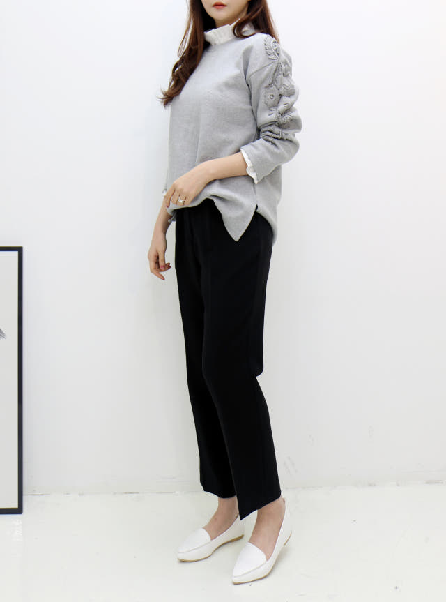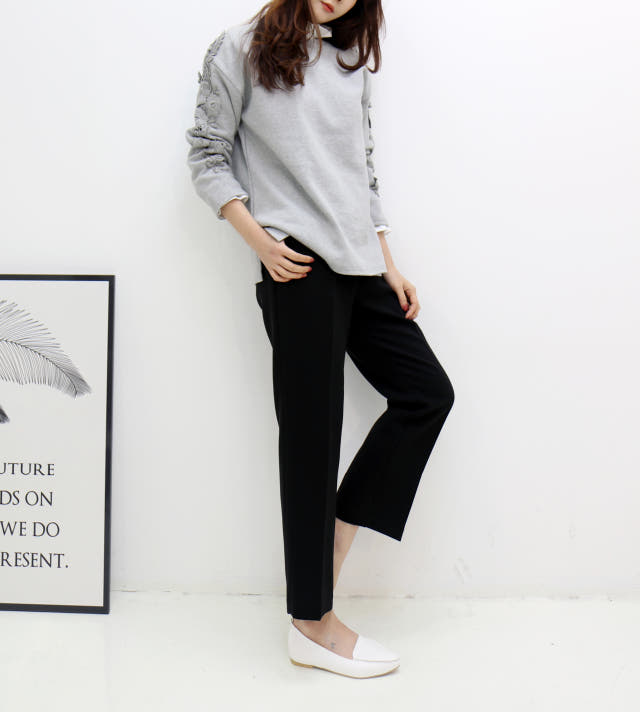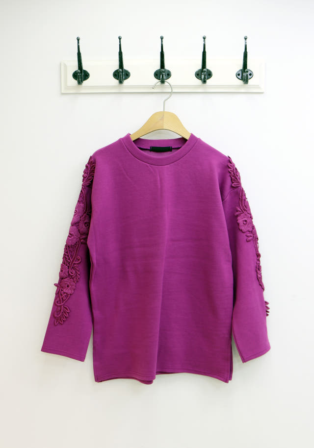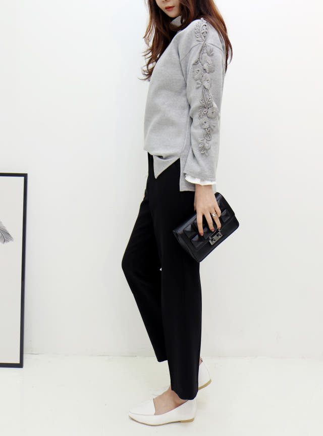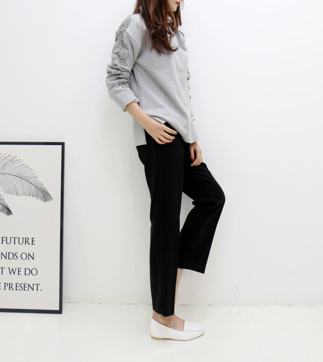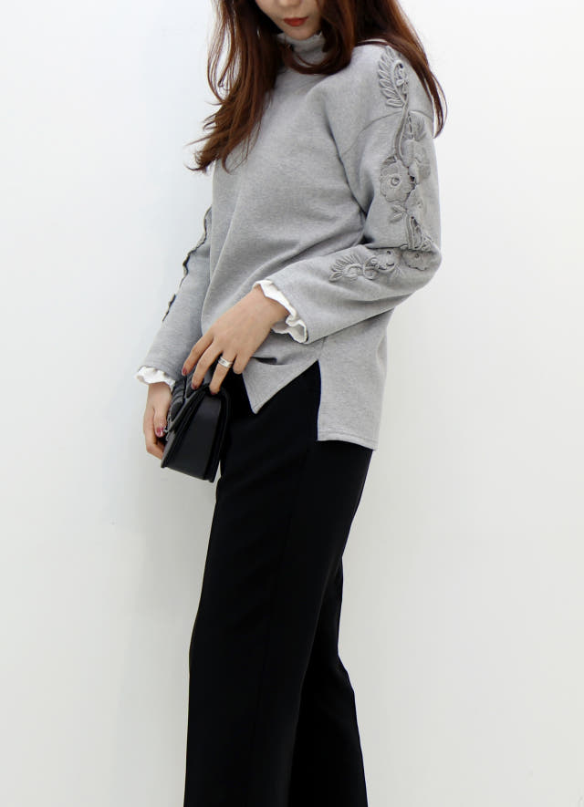 소매부분 플라워 자수가 포인트로