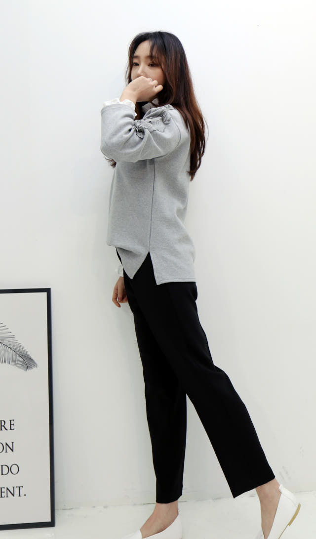 소매에 포인트를 주어 여성스럽고
