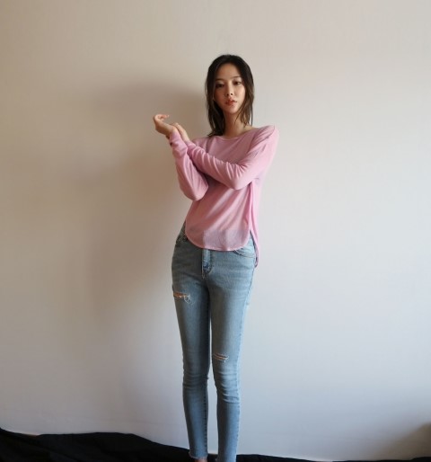살짝 몸을 감싸는 느낌의 루즈핏으로 여리여리함을 강조해주면서