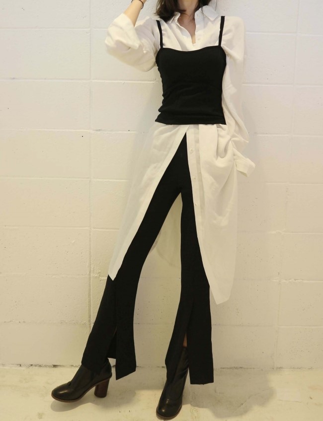 옆트임을넣어 움직일때마다 살랑임과 분위기가 너무나 시크한느낌이 많이 묻어나는 셔츠에요~!