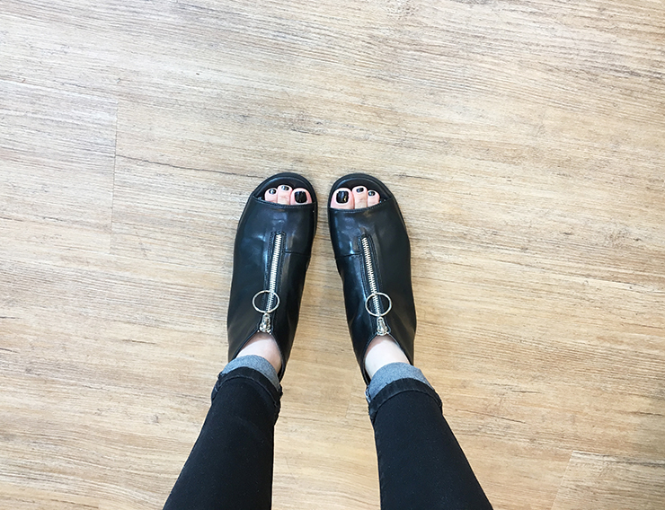 발등 지퍼로 오픈클로징이 가능해 편하게 신고벗기 좋은 슈즈에요 3cm의 낮은 굽과 안정감 있는 착화감으로 편하게 데일리로 신기에도 좋답니다 오픈토로 지금부터 다양한룩에 포인트주기에도 좋을 아이템이에요:)컬러 - 블랙사이즈 - 230 - 250cm